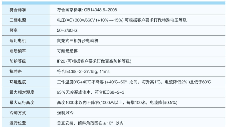 本產(chǎn)品適合各種交流電機(jī)風(fēng)機(jī)、水泵、消防泵、噴淋泵、排污泵、深井泵、空壓機(jī)、制磚機(jī)、破碎機(jī)、礦山機(jī)械等設(shè)備的控制,實(shí)際平滑起動(dòng),無(wú)級(jí)加速。